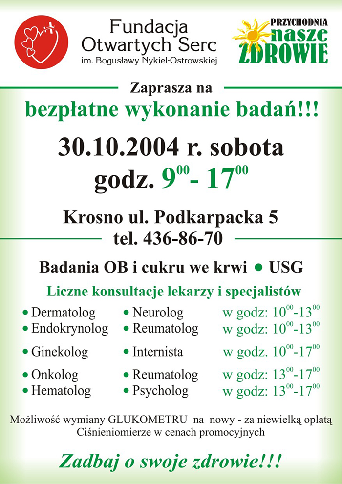 Data: 30.10.2004 r. (Niedziela) godz. 9:00 - 17:00